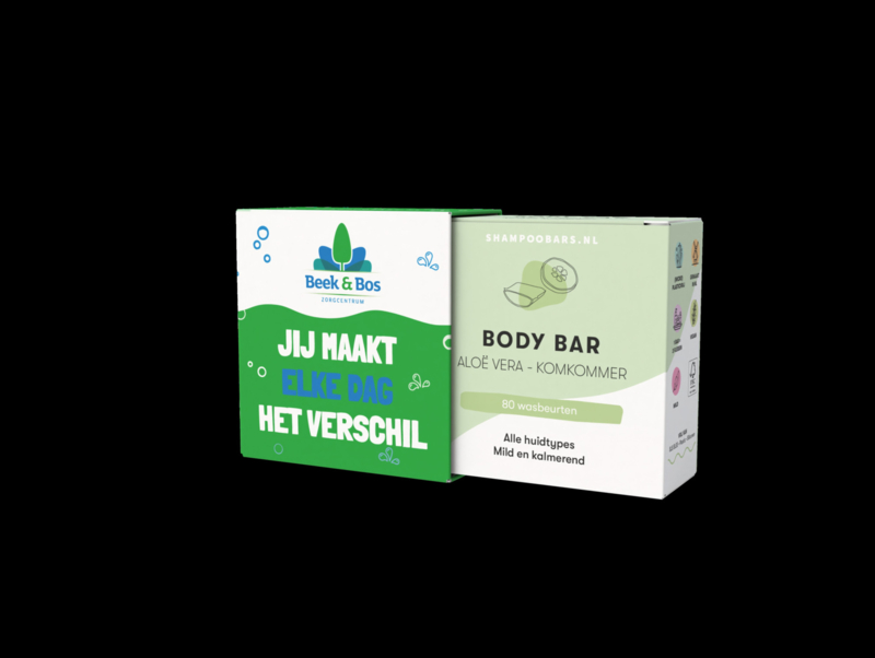 Bovenstaande plasticvrije bodybar met sleeve tekst 'jij maakt elke dag het verschil' is verkrijgbaar: